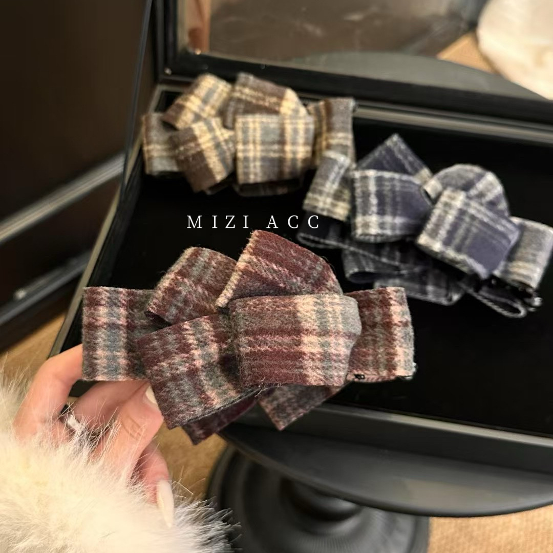 韩系时尚千鸟格蝴蝶结发夹女2025新款后脑勺大号抓夹鸭嘴夹子发饰