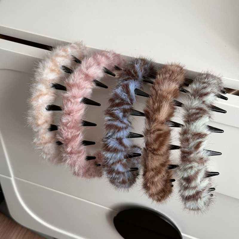 毛绒带齿波浪发箍女高颅顶秋冬毛毛洗脸头箍高级感发箍女日常外戴