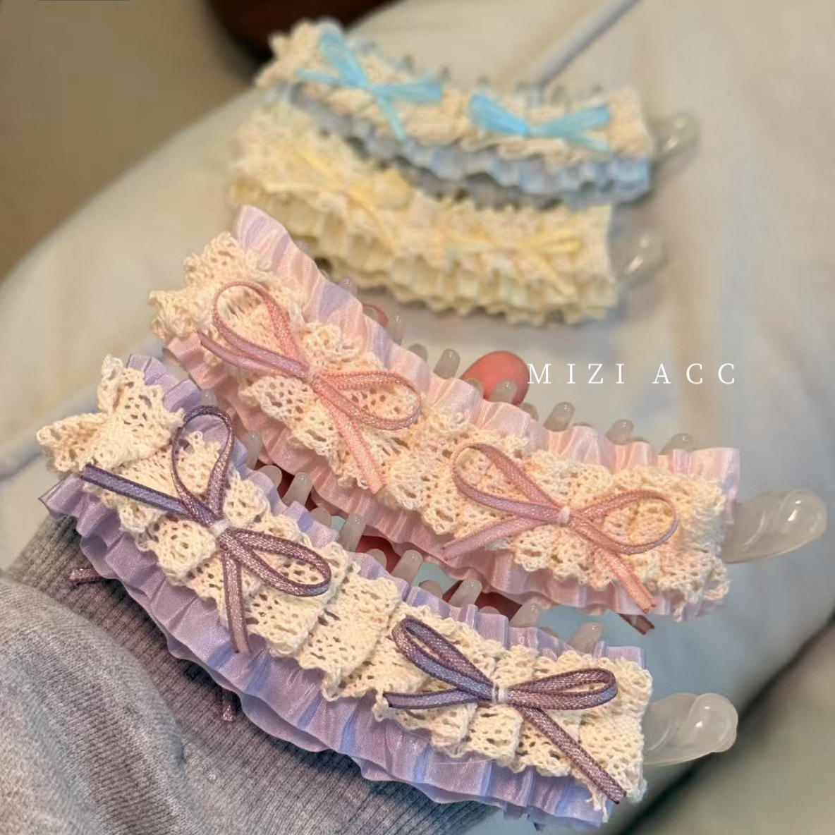 韩系摩卡~复古小花朵香蕉夹多层云朵后脑勺盘发气质飘带马尾竖夹