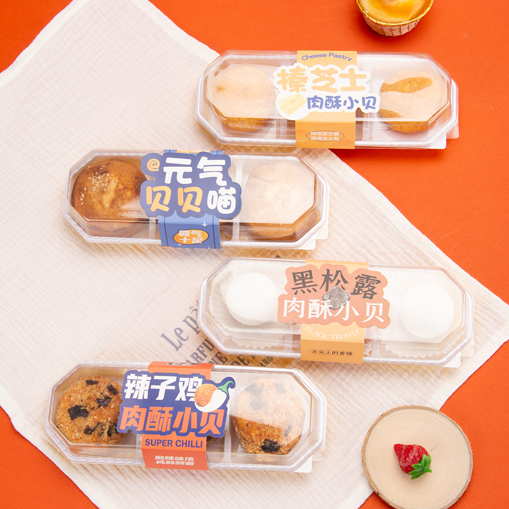 2粒装肉松小贝蛋黄酥月饼西点两格肉松小贝泡芙雪媚娘青团包装盒