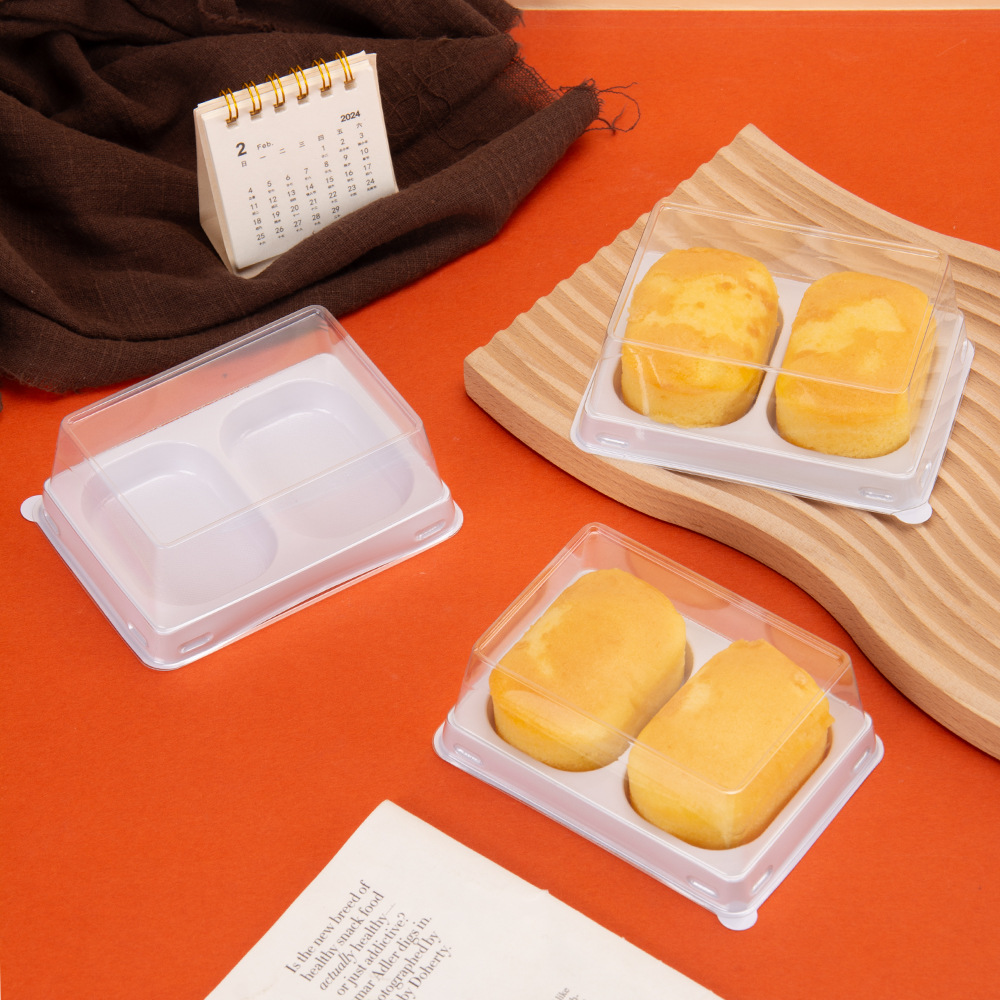 透明2粒装半熟芝士包装盒子轻乳酪蛋糕甜品一次性烘焙西点打包盒