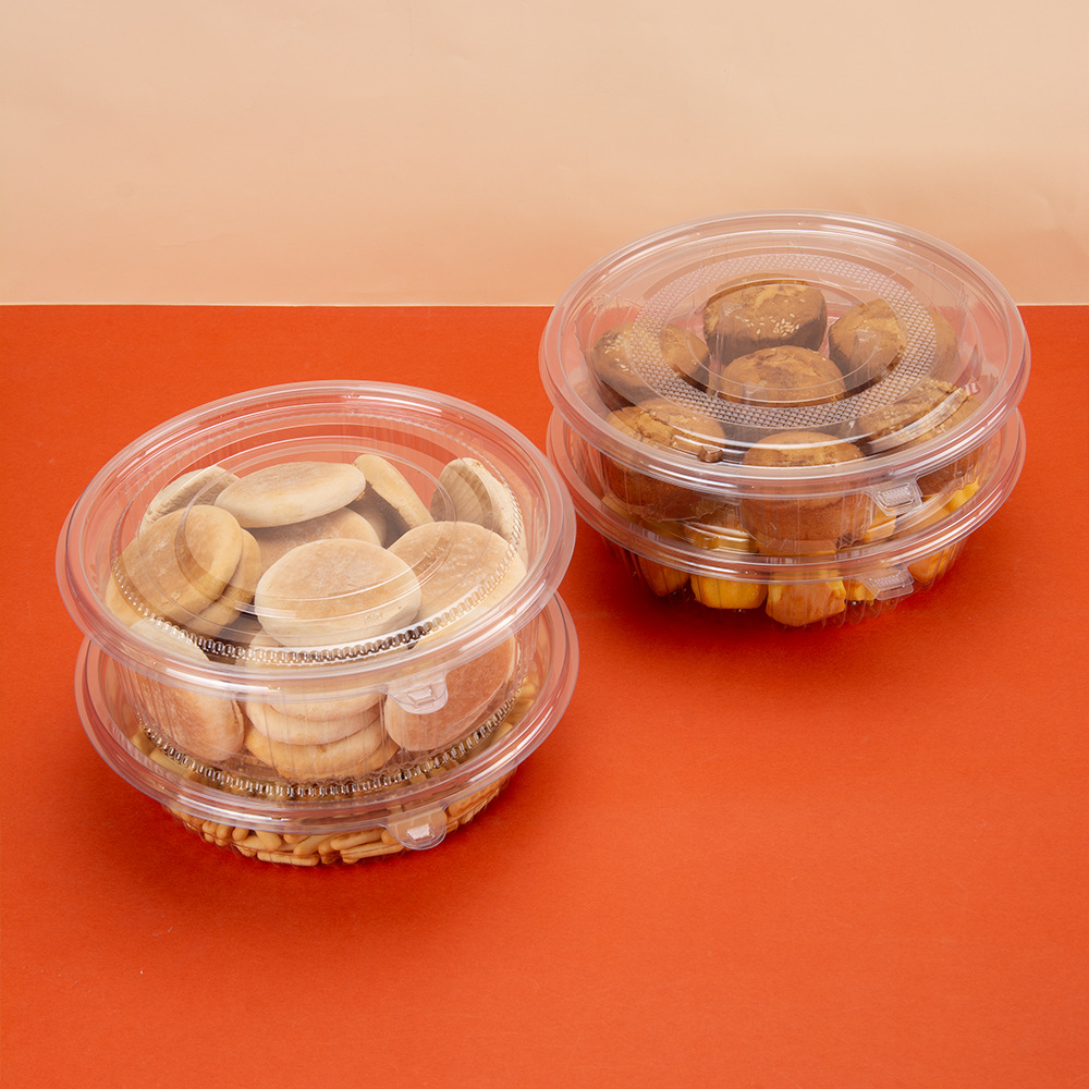 圆形烘焙塑料盒酥饼月饼蛋糕曲饼面包饼干西点透明食品包装盒圆盆