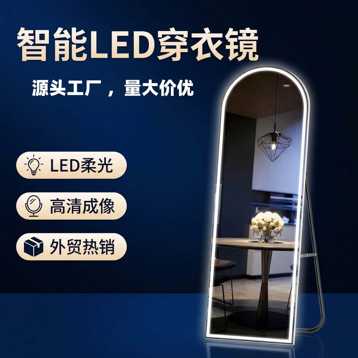 加工定制跨境全身镜穿衣落地镜子家用壁挂触摸屏led智能墙试衣镜