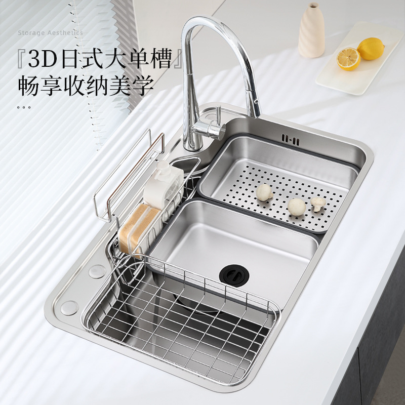 304不锈钢日式大单槽厨房水槽压纹洗菜盆厨房台下多功能洗碗池