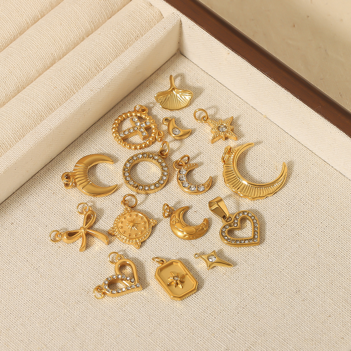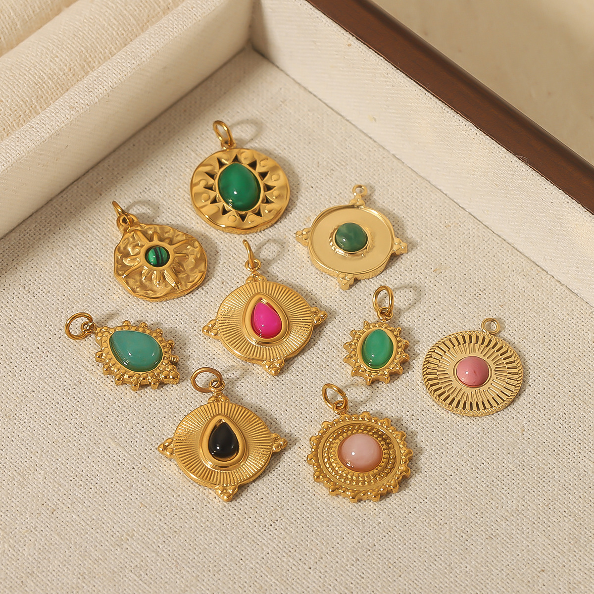 法式波西米亚风复古不锈钢天然石吊坠女18k金Diy配饰钛钢项链配件