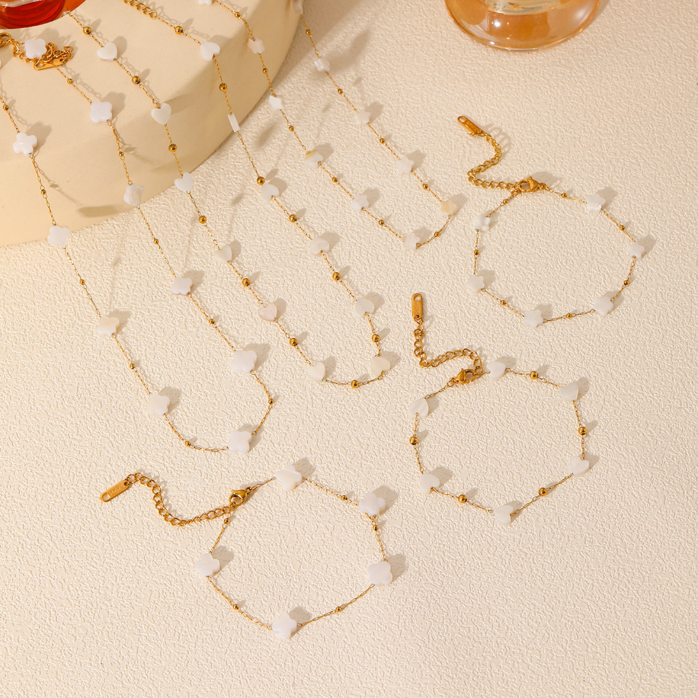 跨境新款法式轻奢白贝项链不掉色女夏季ins风高级感钛钢项链套装