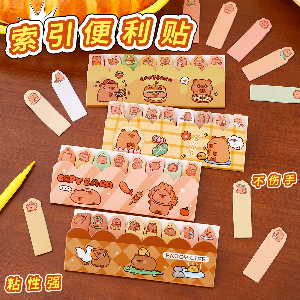 跨境水豚排排站便利贴学生ins可爱标记索引贴卡皮巴拉便签纸N次贴