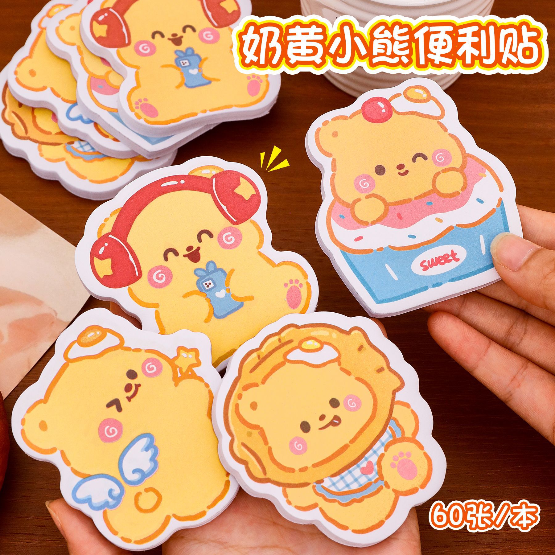 卡通奶黄小熊便利贴可爱异型留言便签贴高颜值手账装饰素材N次贴