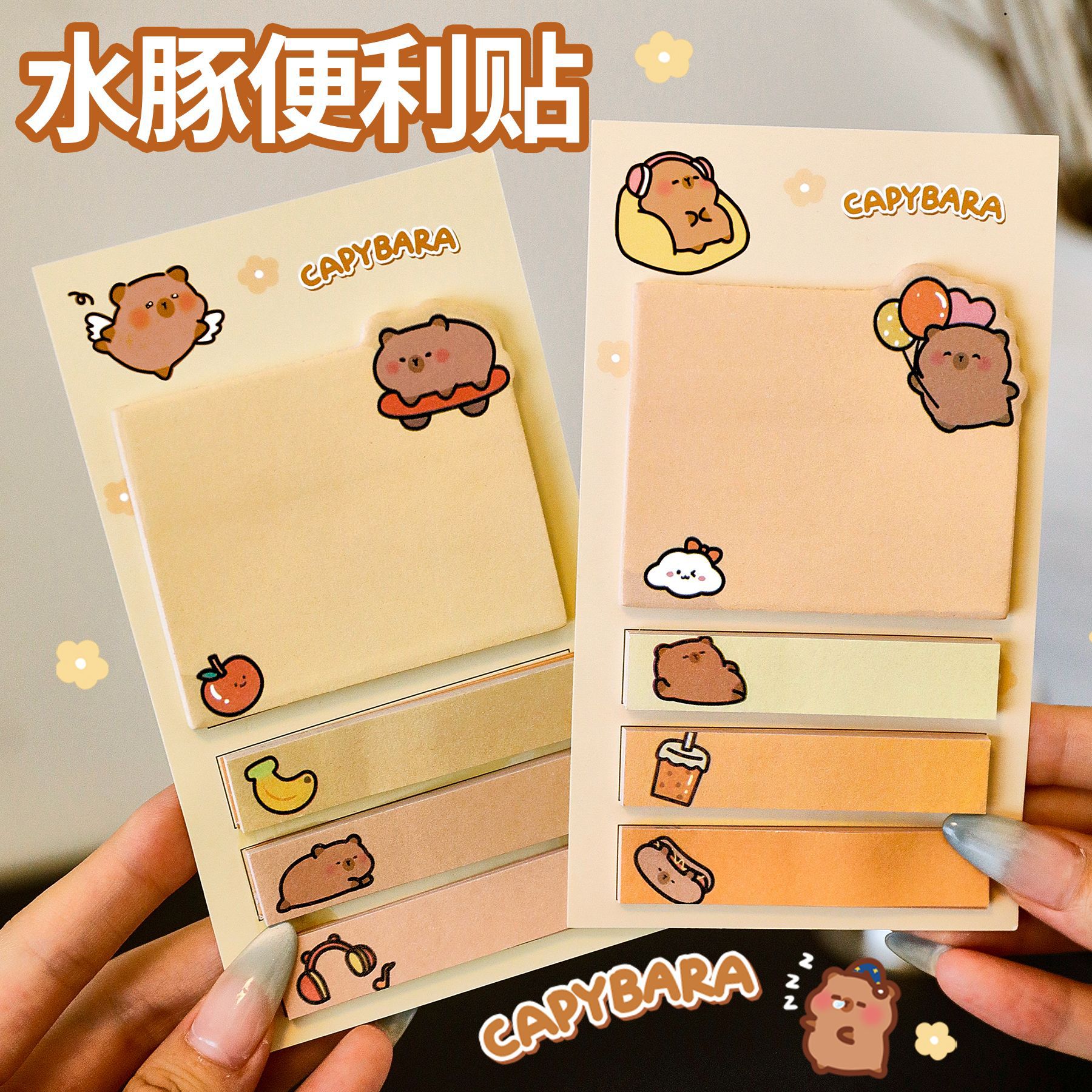卡皮巴拉便利贴 学生可爱粘性强留言记事贴ins卡通水豚n次贴便签