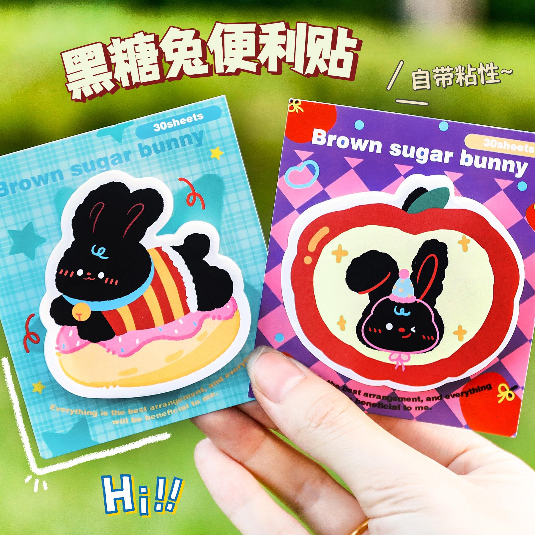 可爱黑糖兔便利贴卡通少女心手账装饰便签贴学生高颜值留言N次贴