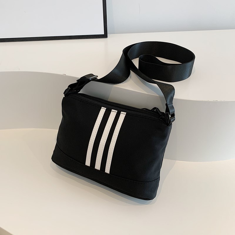 休闲运动风牛津布斜挎包包女2024新款韩版潮条纹小方包百搭单肩包