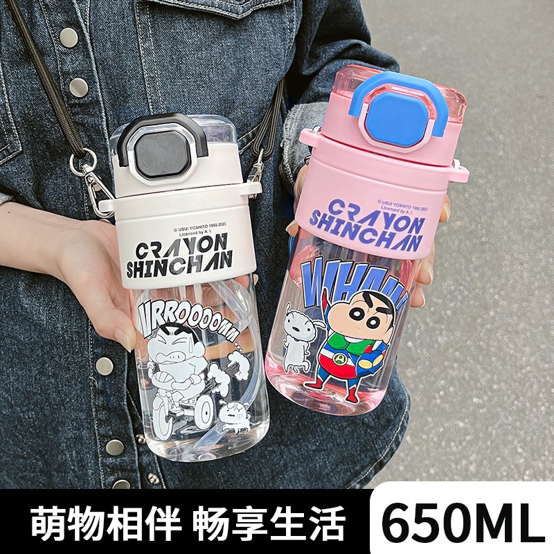 蜡笔小新花样吸管塑料杯夏季水杯 ins可爱办公室女生杯子户外水壶