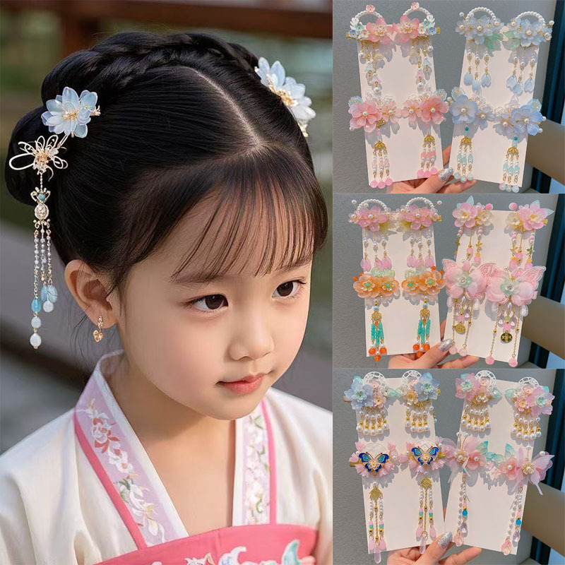 儿童汉服头饰发夹小女孩古风发卡超仙复古花朵流苏气质中国风配饰