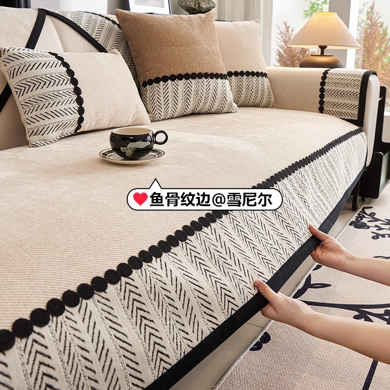 奶油风沙发垫子四季通用2024新款盖布巾防滑皮沙发套罩雪尼尔坐垫
