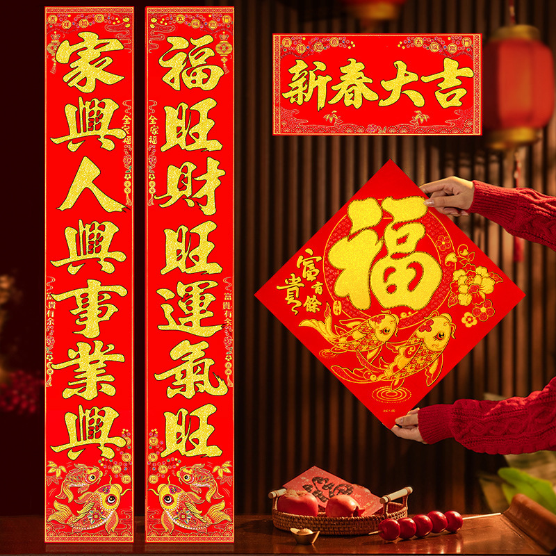 马年对联2026福字门贴新款春联高端绒布自带全背胶自粘入户门对联