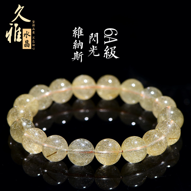 久雅水晶 天然维纳斯金发晶圆珠手链 细发丝黄发晶时尚手串 批发