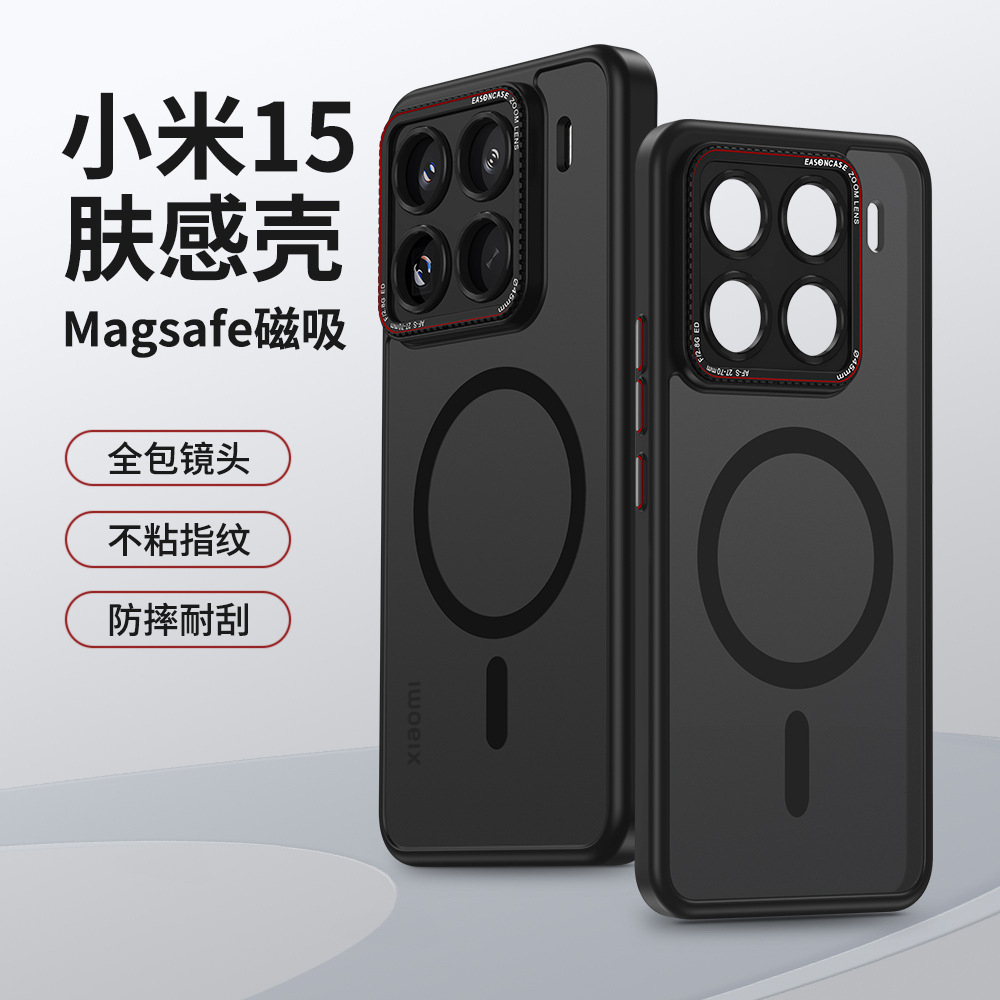 新款肤感磨砂适用小米15pro磁吸手机壳莱卡金属镜头圈全包保护套