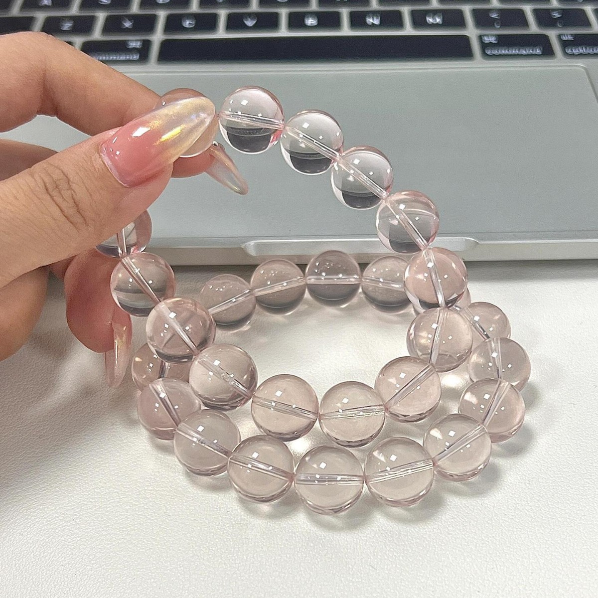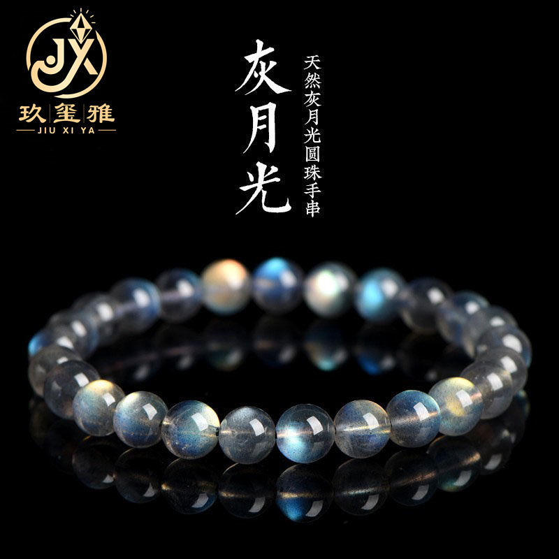 久雅水晶 天然月光石散珠手链 净体彩光灰月光 拉长石圆珠手串