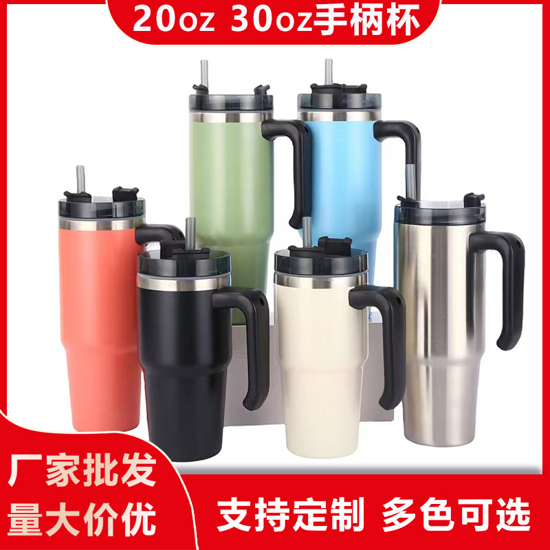 跨境新品20oz30oz手柄杯不锈钢汽车杯手提盖冰霸杯304真空吸管杯