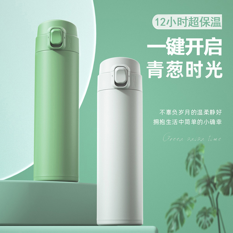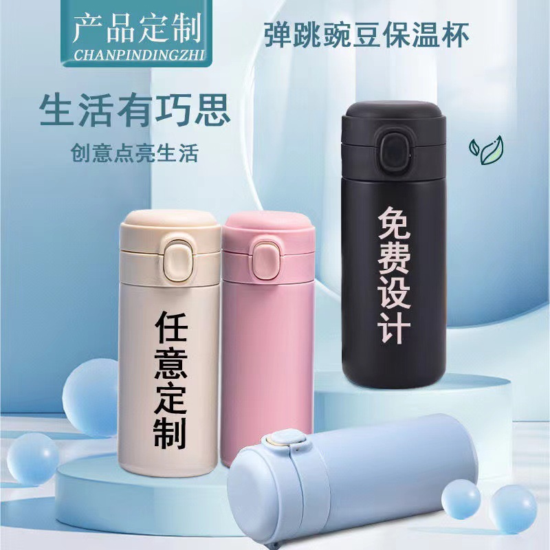 340不锈钢保温杯简约网红豌豆杯双层真空弹跳杯企业定制礼品水杯