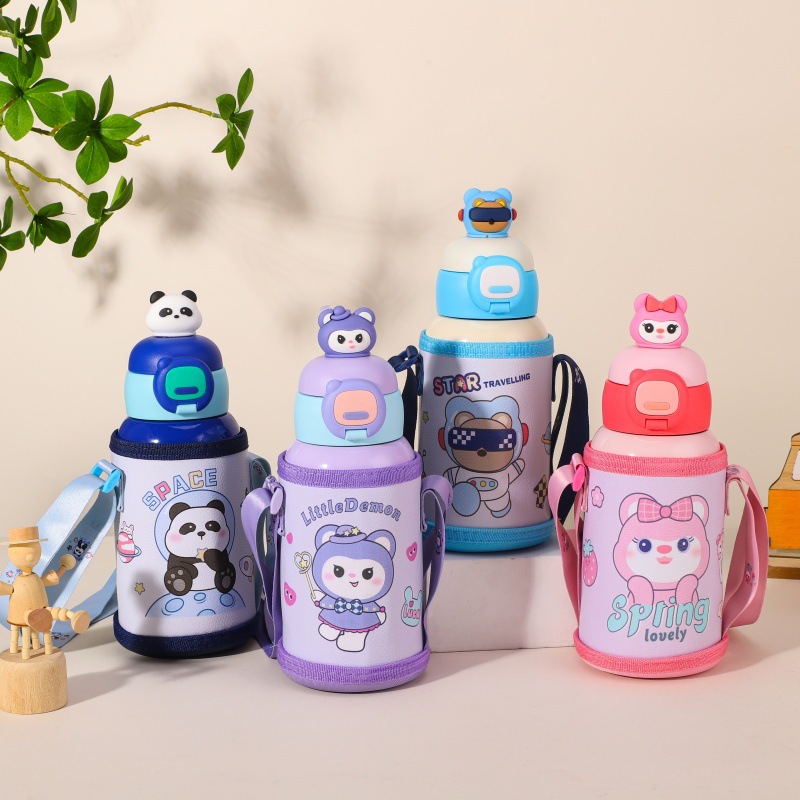 新款316食品级儿童保温杯卡通吸管水杯大容量背带便捷幼儿园杯子