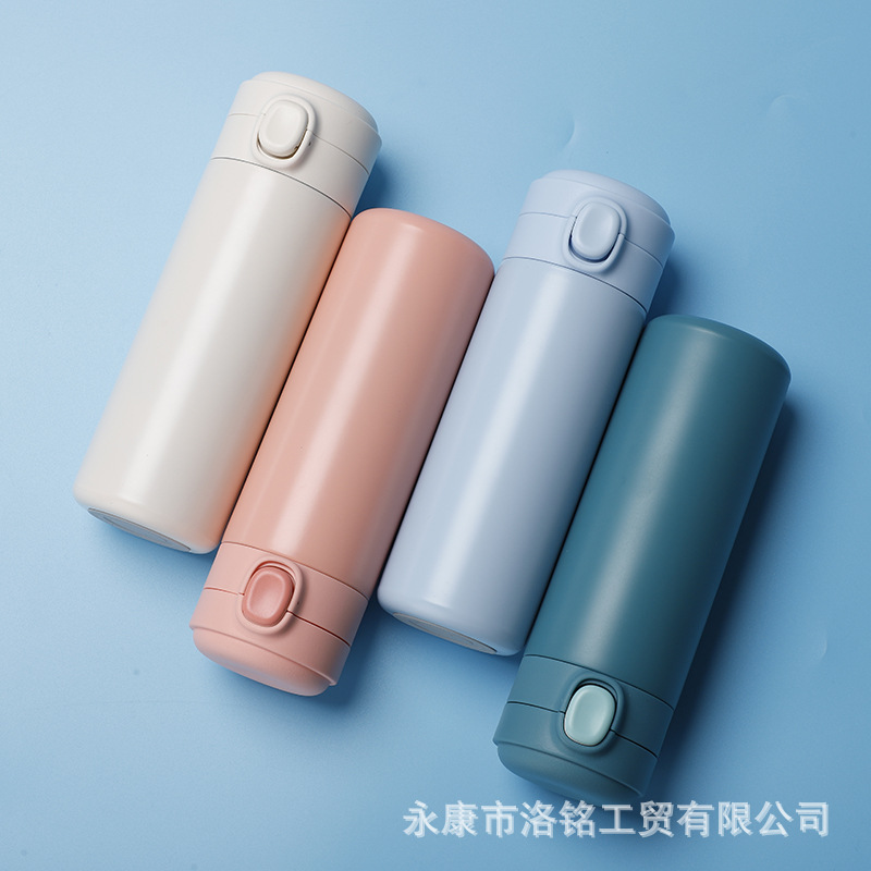 简约弹跳盖保温杯304不锈钢水杯车载真空杯礼品马卡龙杯子可代发