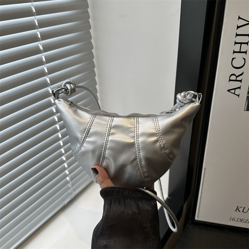 2024秋季韩版洋气纯色链条牛角饺子包气质时髦休闲感单肩腋下包