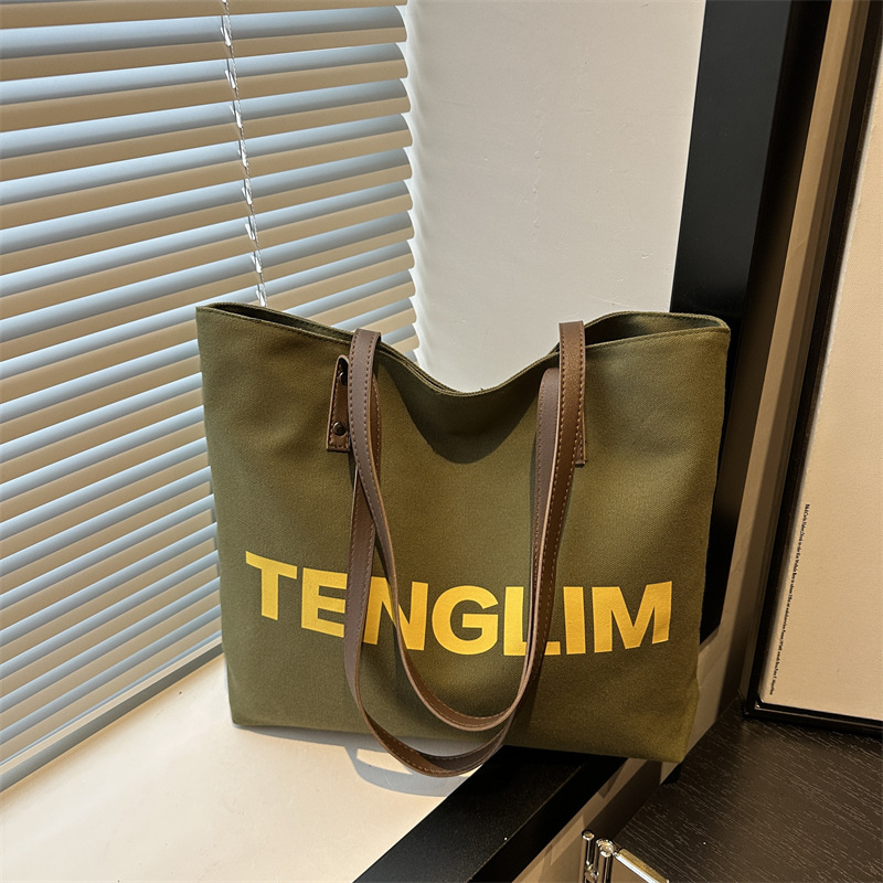 文艺通勤大容量帆布女包2024新款洋气百搭单肩字母包大学生托特包