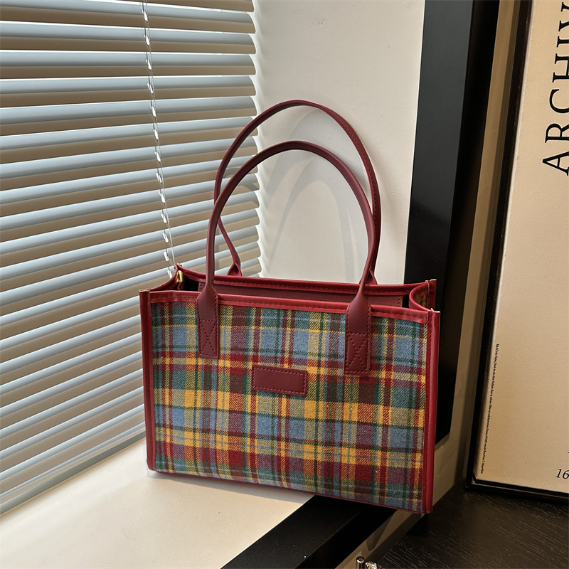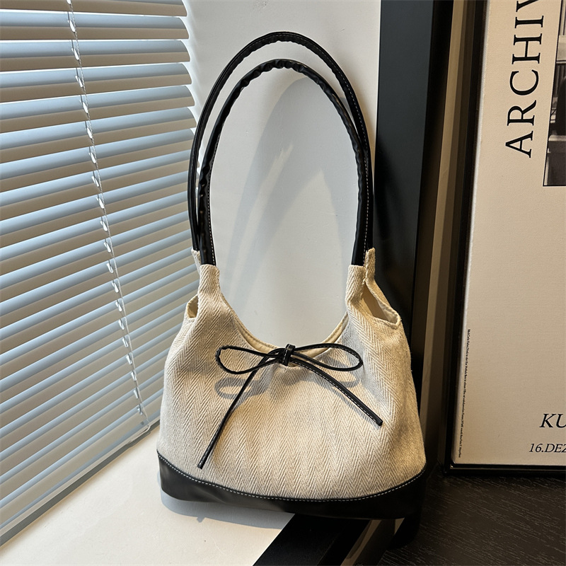 休闲撞色拼接大容量2024复古秋季新款简约洋气质感托特单肩腋下包