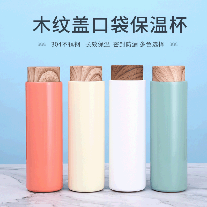 木纹盖ins风不锈钢保温杯户外运动便携水杯多色喷漆喷塑礼品车载