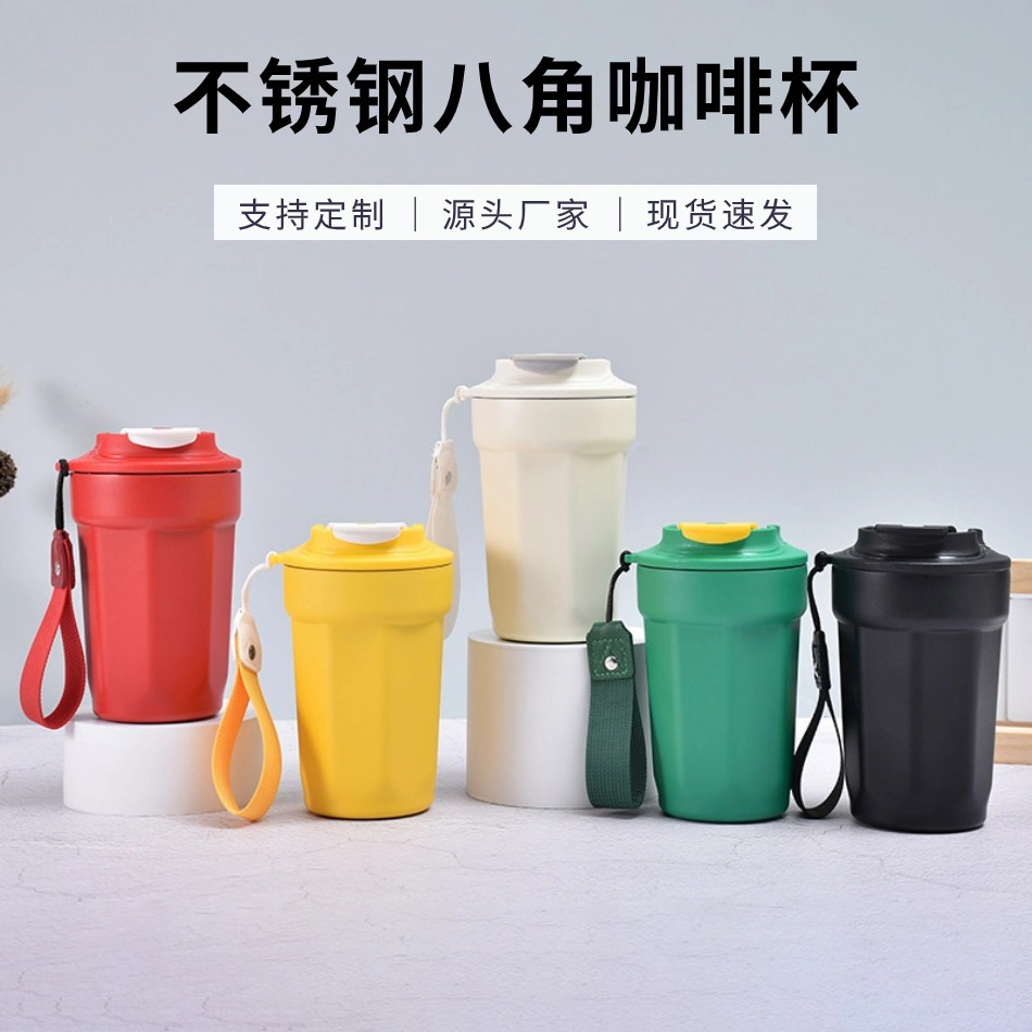 新款316不锈钢八角可乐咖啡杯便携提绳随手杯简约ins风真空保温杯