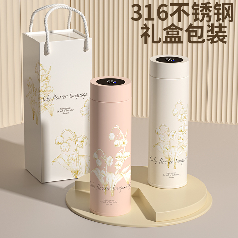 公司年会礼品随行杯316不锈钢智能保温杯新款铃兰水杯子印制LOGO