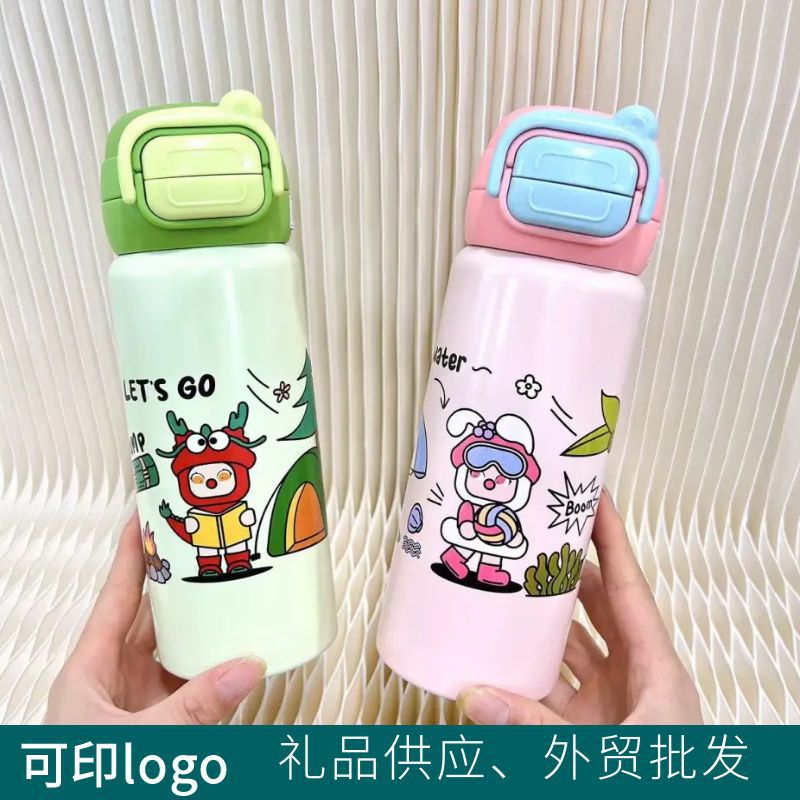 卡通皮杯套弹跳316不锈钢保温杯幼儿园宝宝喝水杯子双盖吸管杯子