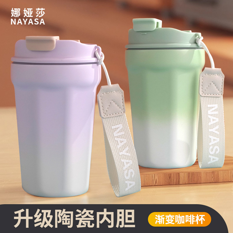 家用加厚咖啡保温杯男生女生高颜值便携陶瓷内胆316不锈钢双饮杯