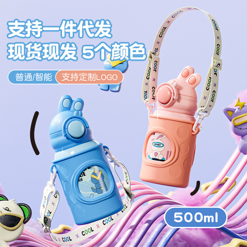 高颜值兔子316不锈钢儿童吸管保温杯可爱男女生水杯便携智能杯子