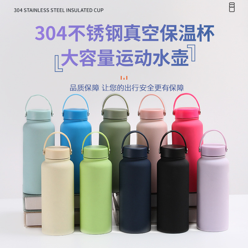 跨境304不锈钢美式大口登山壶便携家用保温杯户外手提运动水杯