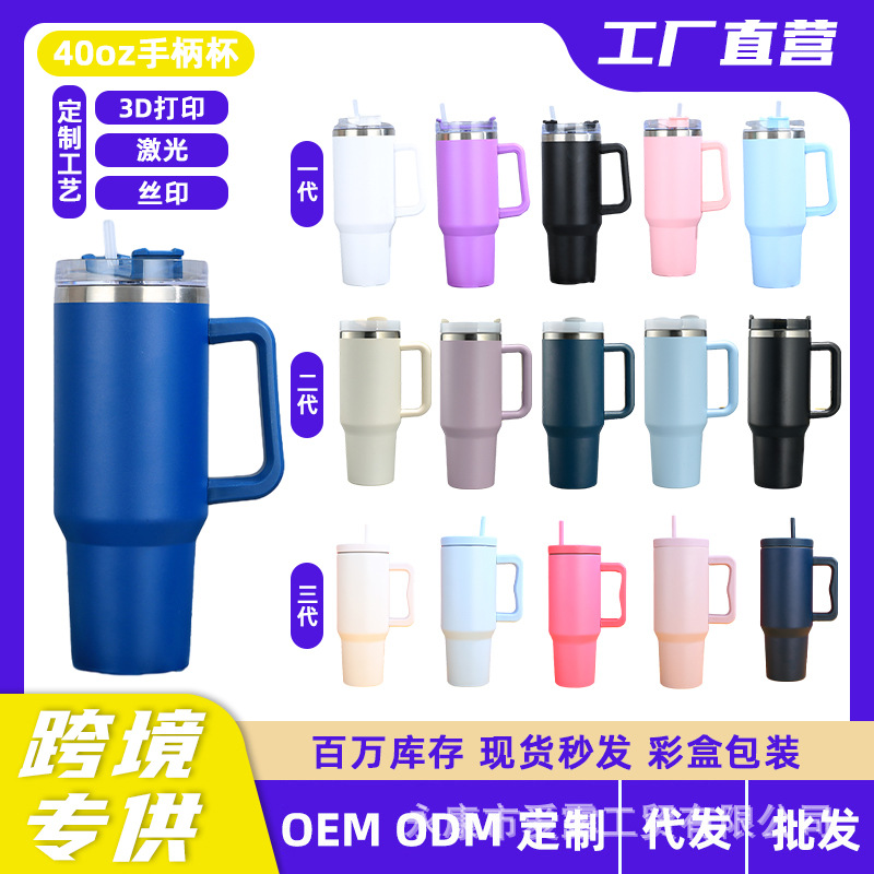 跨境40oz汽车杯304不锈钢大容量保温杯手柄杯保冷真空吸管冰霸杯