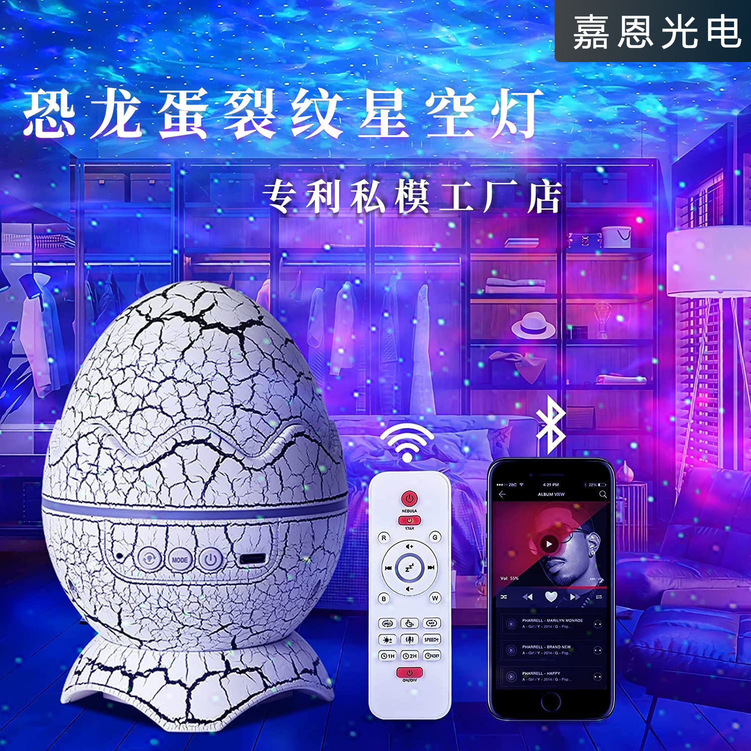外贸专供 恐龙蛋裂纹星空灯水波纹激光投影蓝牙音箱小夜灯氛围灯
