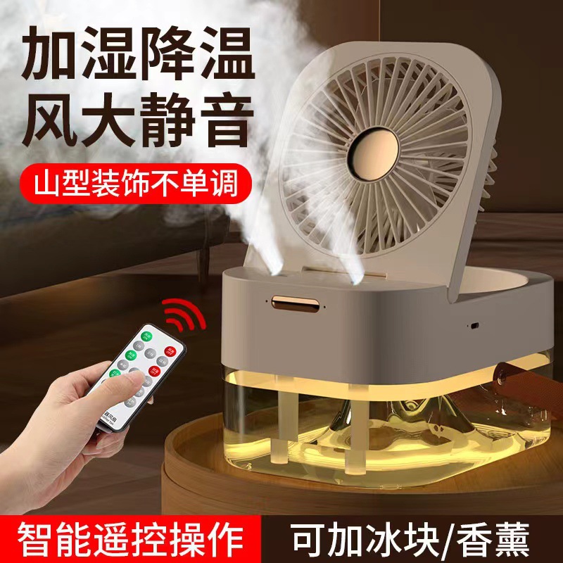 外贸专供 翻盖喷雾风扇办公室桌面学生宿舍冷风机遥控定时加湿器