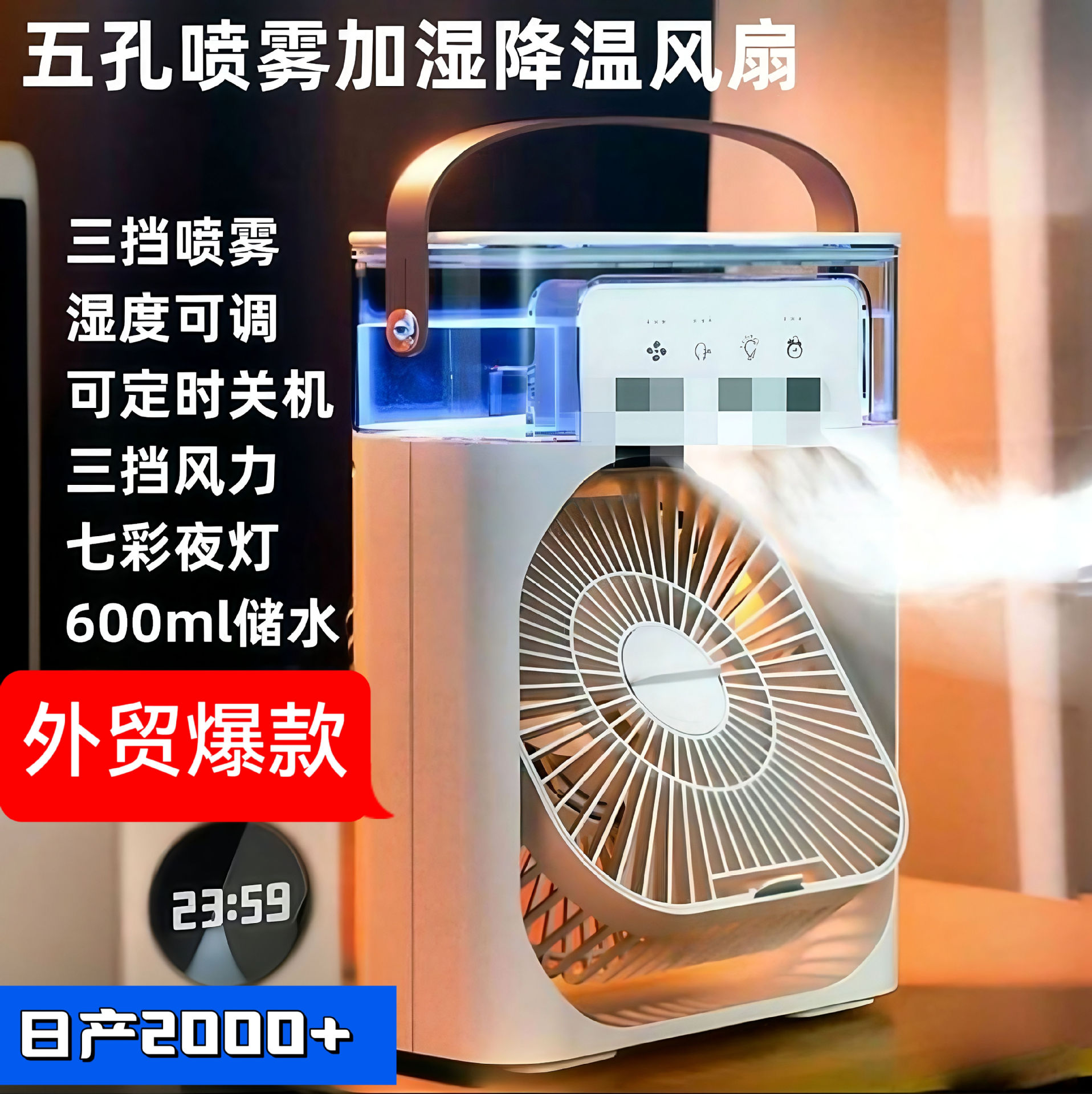 外贸专供 五孔喷雾风扇led灯3档制冷电风扇加湿风扇空调扇香薰片