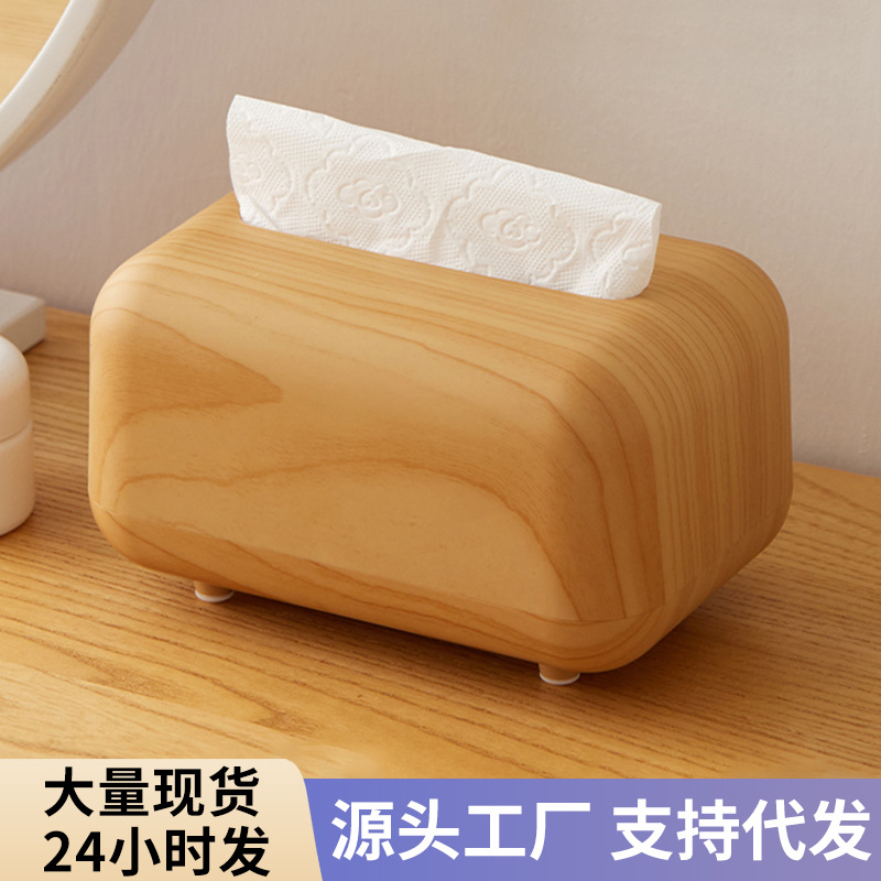 ins风高仿木纹磁吸纸巾盒卧室客厅装饰带弹簧防滑桌面茶几抽纸盒
