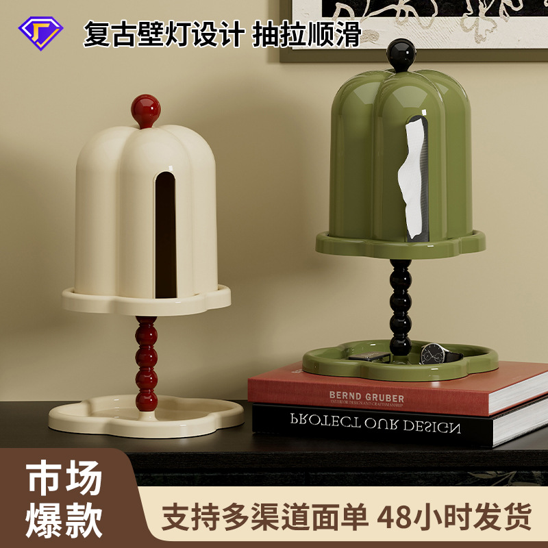 桌面纸巾盒高级感客厅卫生间免打孔家用复古风多功能创意抽纸盒子