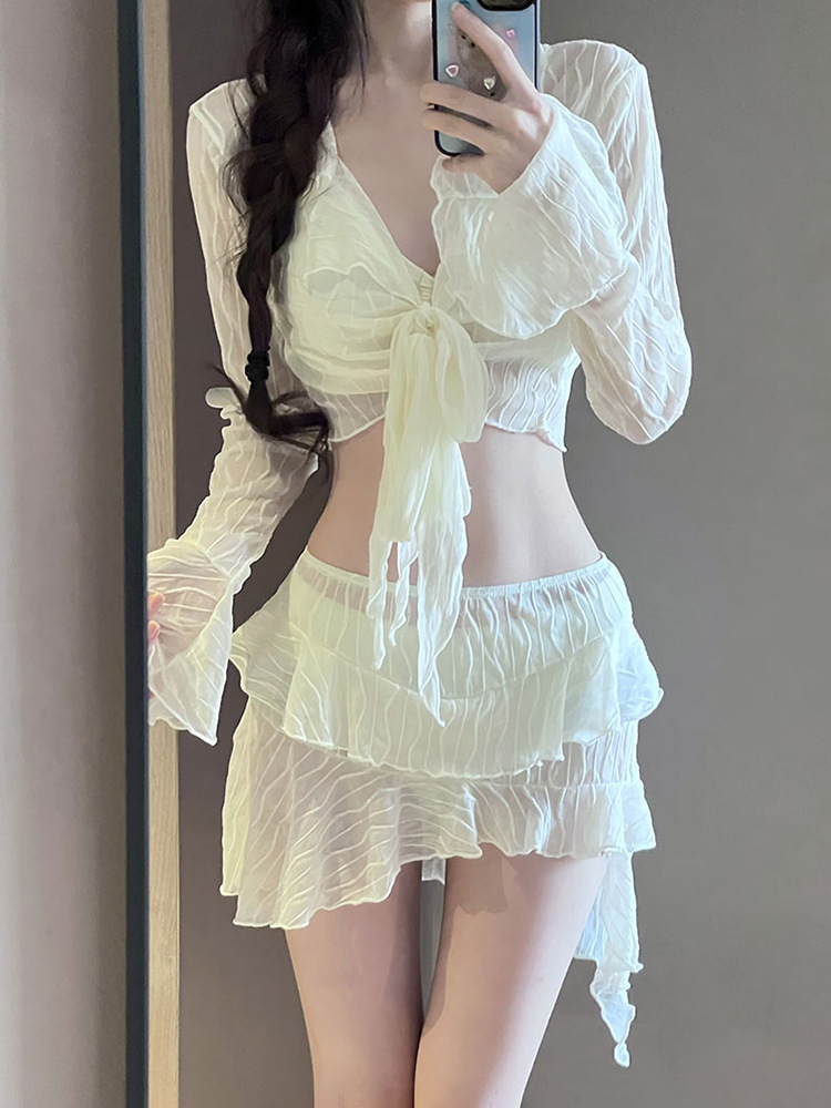 高级感泳衣女比基尼2024新款显瘦保守遮肚四件套性感分体度假温泉