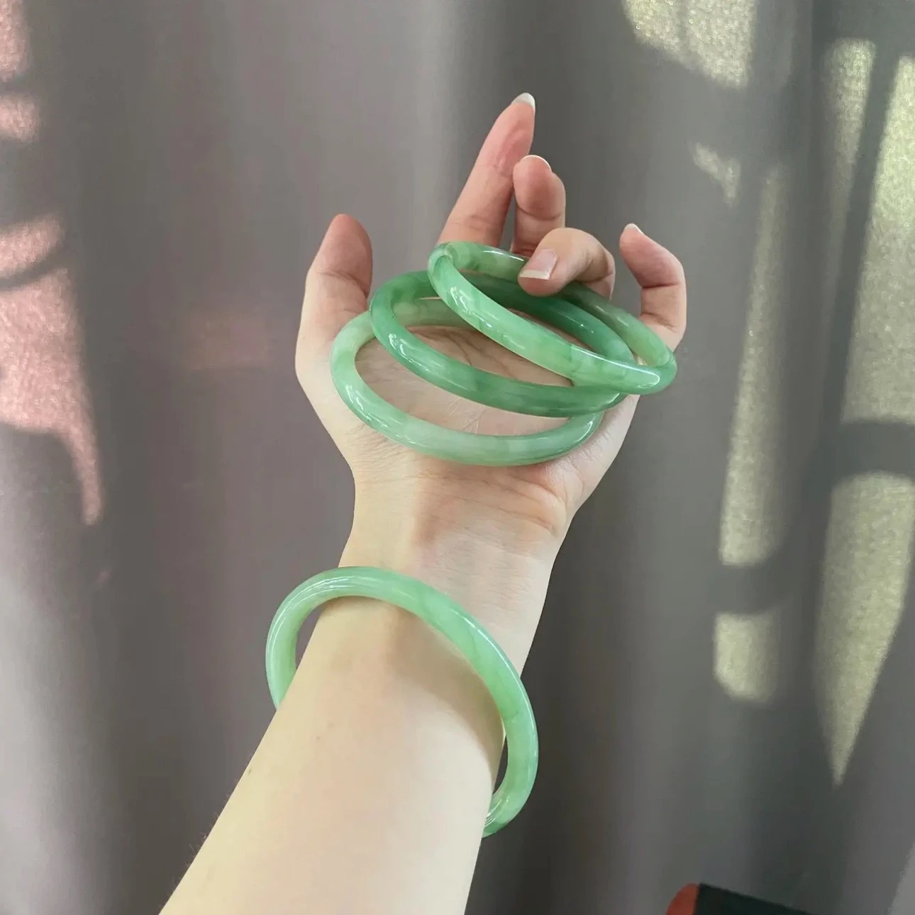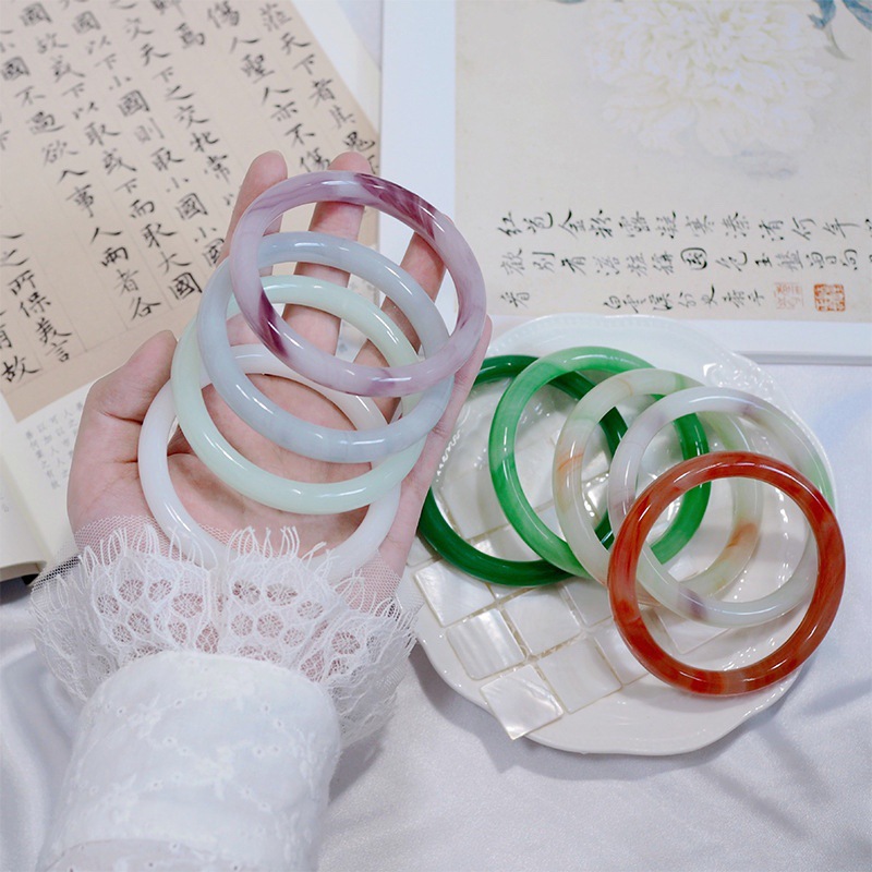 粗款圆镯叮当镯玻璃仿玉古风配饰禁步闺蜜小红书同款推荐叮当手镯