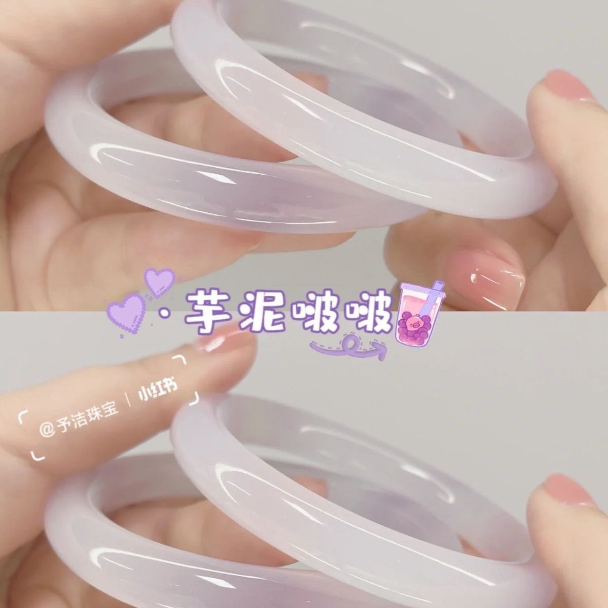小红书同款芋泥啵啵绝美手镯玻璃仿制贵妃镯不掉色汉服配饰闺蜜镯