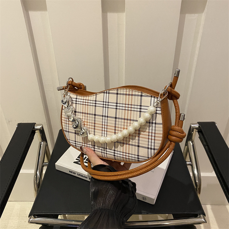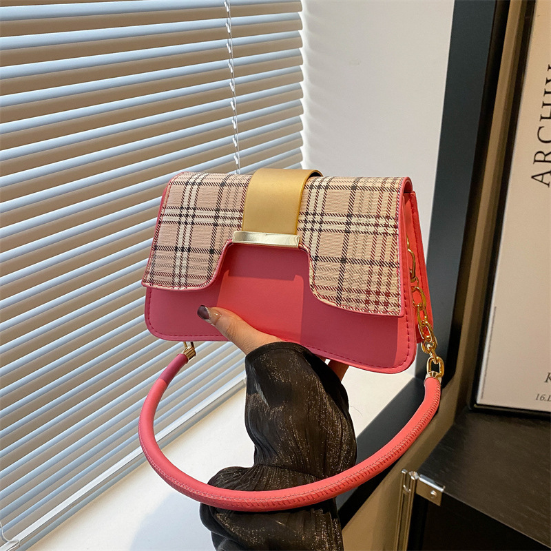 2024新款格子复古唯美通勤包个性潮流时尚小众设计简约单肩腋下包