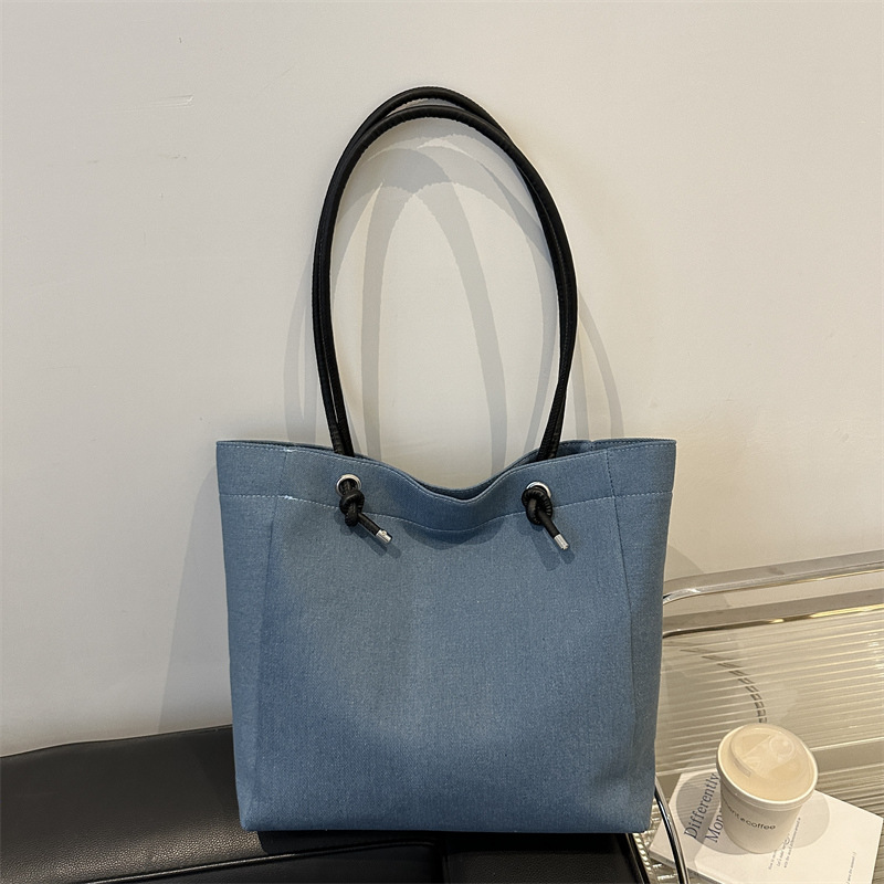 休闲通勤大容量包包女式2024新款牛仔布单肩包轻便百搭手提托特包