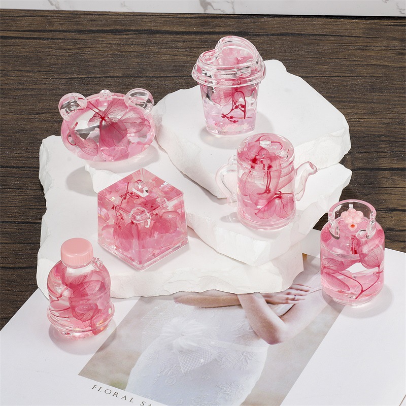 樱花粉色干花入油夜光流沙瓶摆件亚克力钥匙扣包包挂件小礼品批发