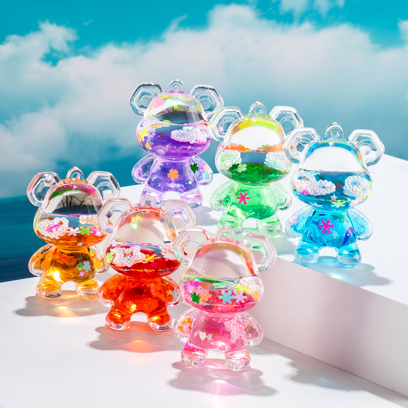 新款爆闪熊液体入油流沙瓶桌面摆件批发亚克力钥匙扣配件饰品摆摊