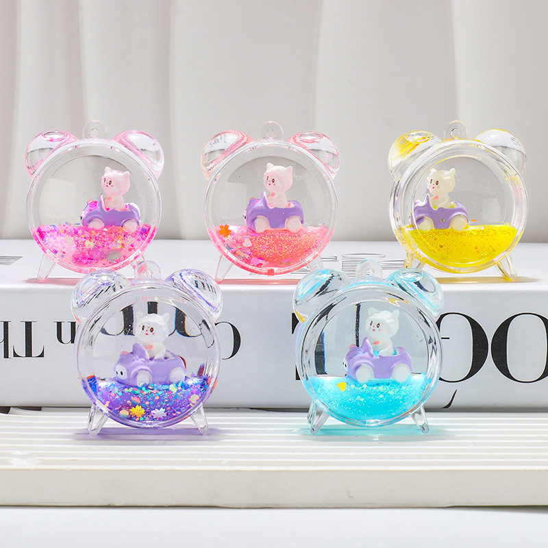 可爱小羊车入油钥匙扣挂件亚克力流沙瓶桌面摆件包包挂绳礼品批发